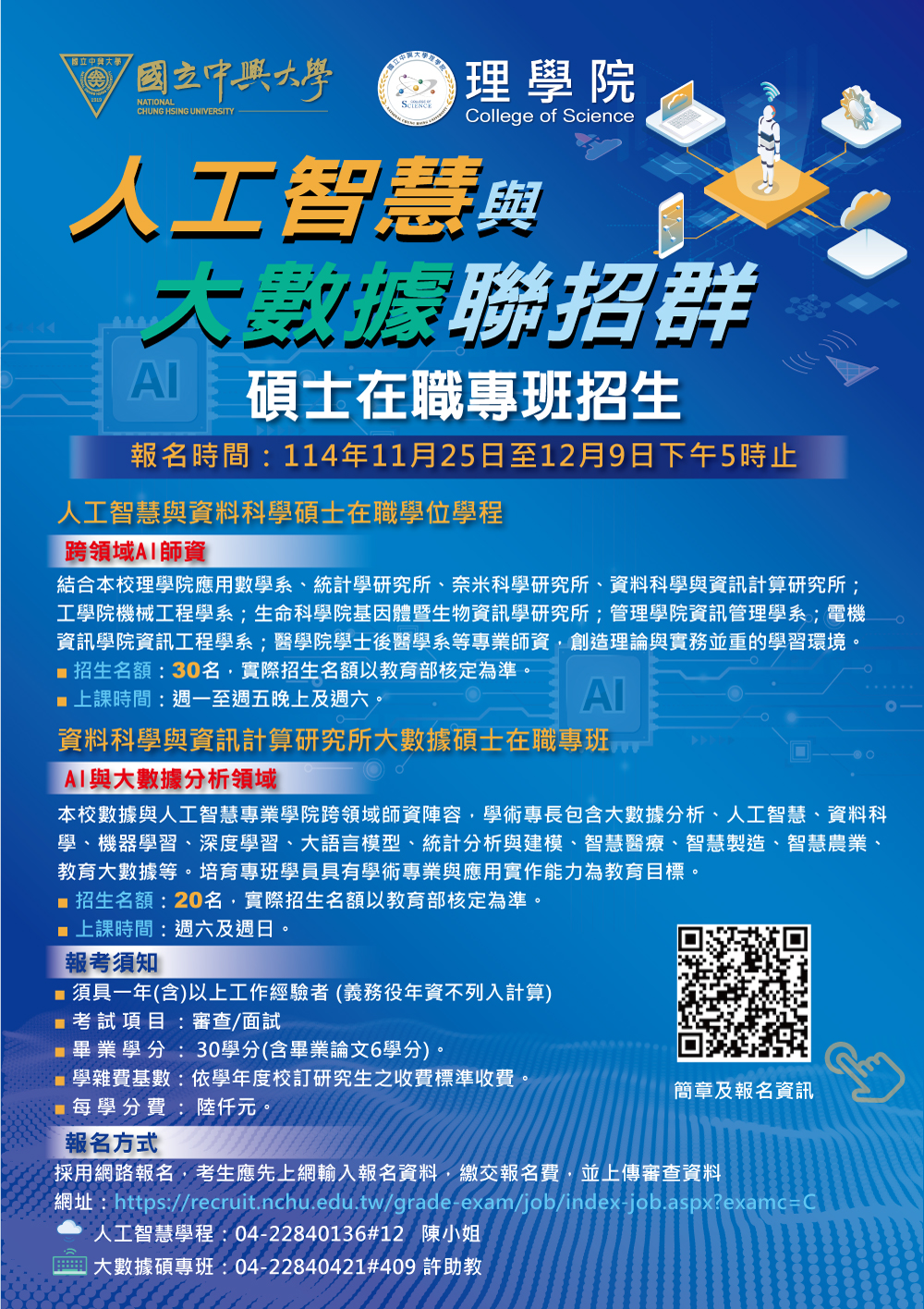 ◎報考須知:人工智慧與資料科學碩士在職學位學程